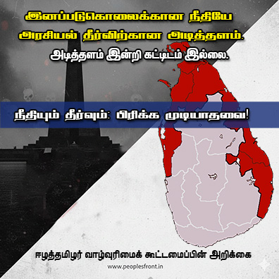 முள்ளிவாய்க்கால் இனவழிப்புக்கு நீதியும், ஈழத்தமிழர் தேசிய இனச் சிக்கலுக்கான அரசியல் தீர்வும் அடிப்படைக் கோரிக்கைகள்! ஒன்றிலிருந்தொன்று பிரிக்க முடியாதவை!